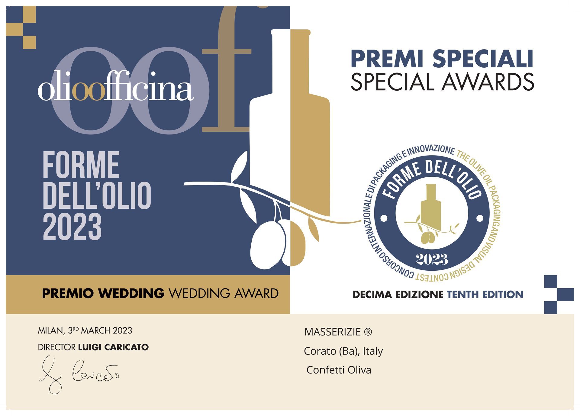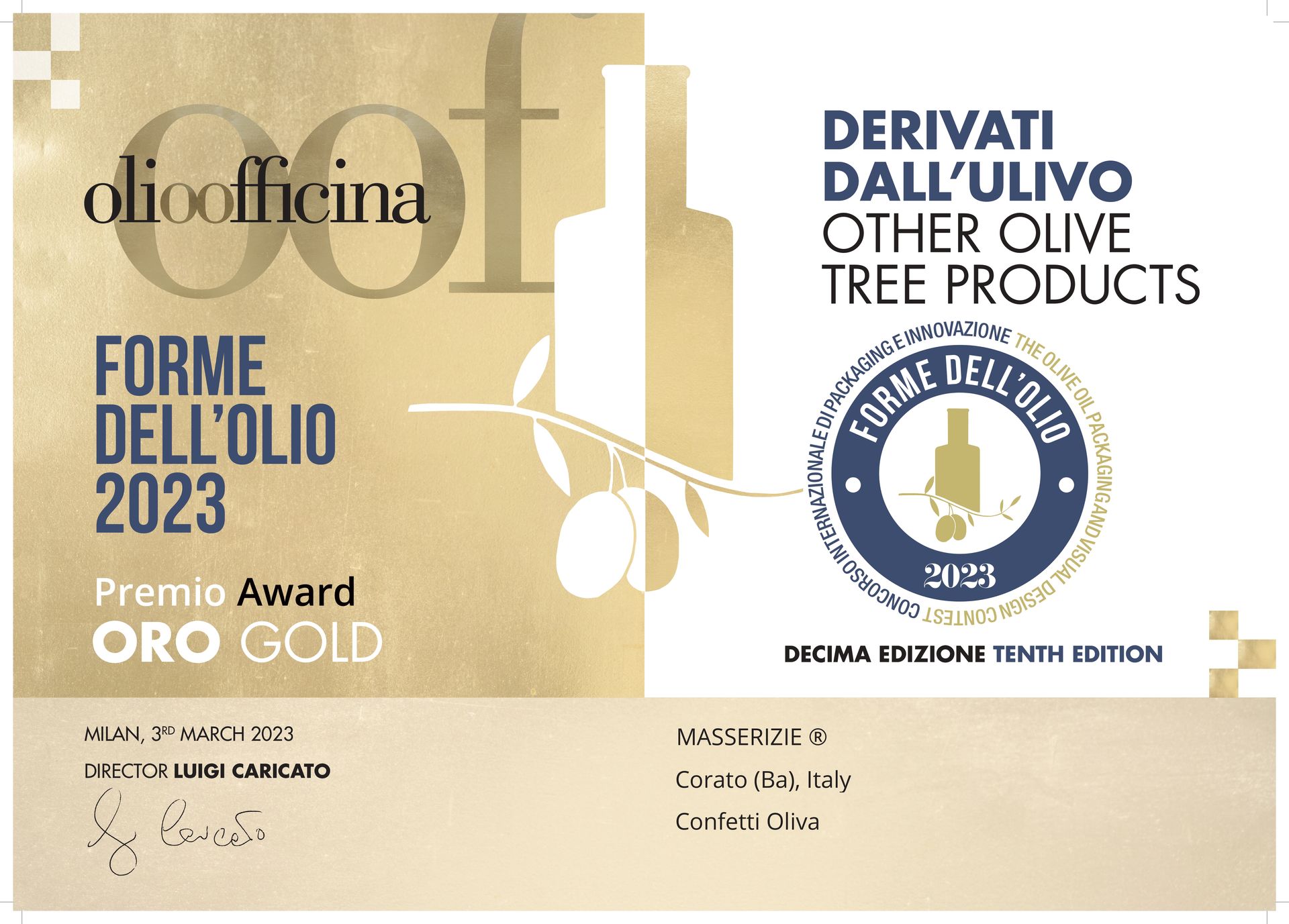 I confetti Masserizie ricordano l'invaiatura delle olive pugliesi, dal tipico colore verde/viola. Il guscio confettato ricopre delizioso cioccolato al latte e cuore di mandorla di Toritto. Confezionate nel tradizionale packaging in juta, utile anche per la presentazione.